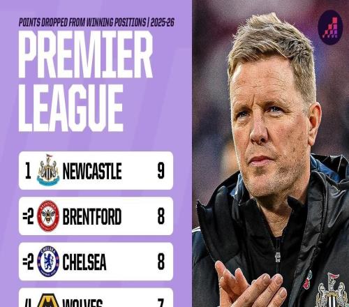 英超从领先位置丢分排名:纽卡居首,蓝军、小蜜蜂并列次席