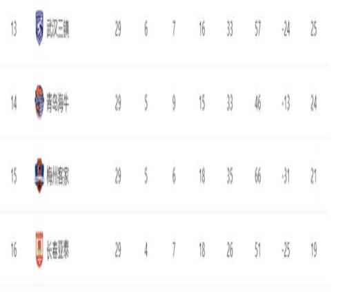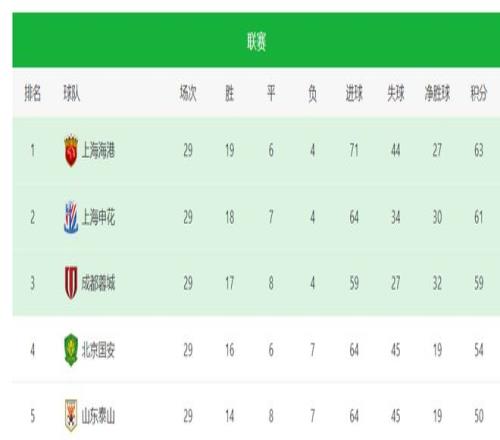 目前中超积分榜上,上海海港以63分领跑,而上海申花积61分位居第2名,而成都蓉城则是以59分位居第3名,北京国安和山东泰山分别以54、50分锁定第4、5名,而在保级区,长春亚泰积19分提前降级,梅州客家和青岛海牛则是以21、24分排在倒数2、3名。